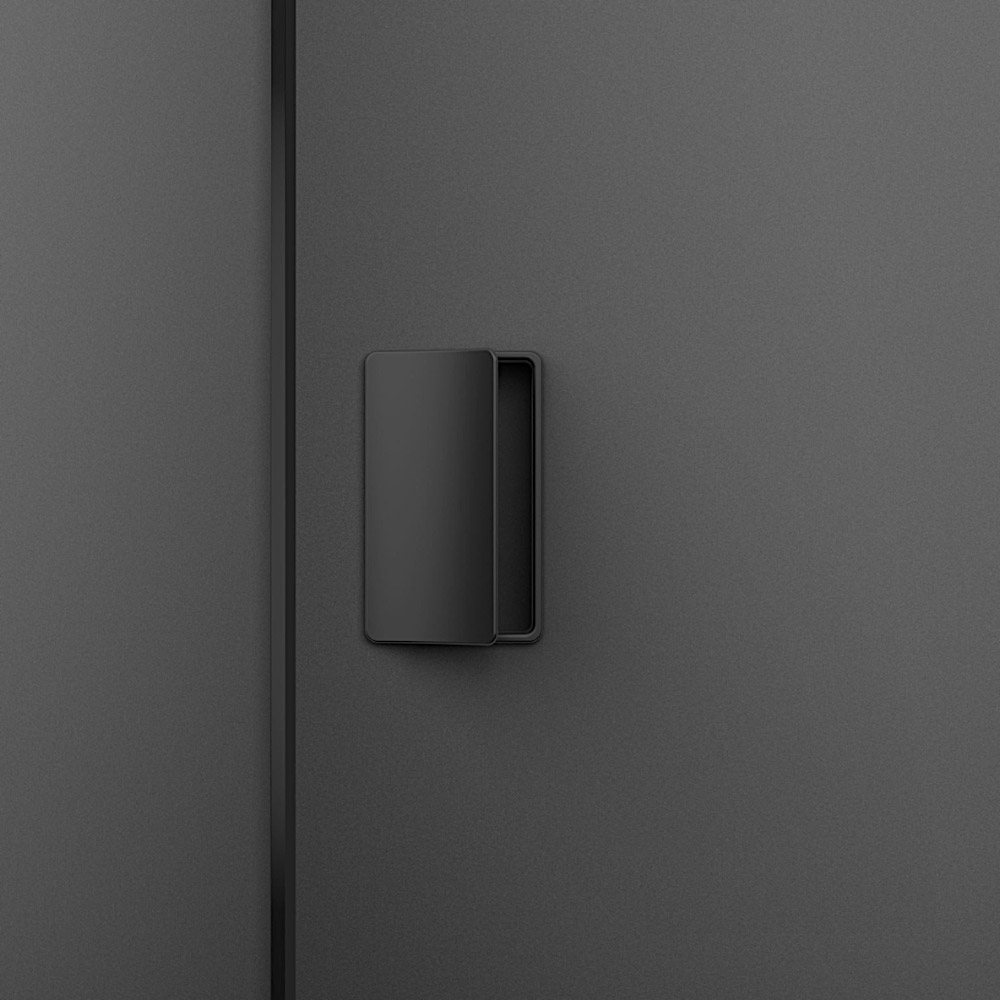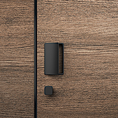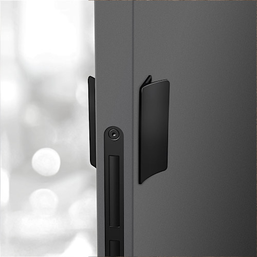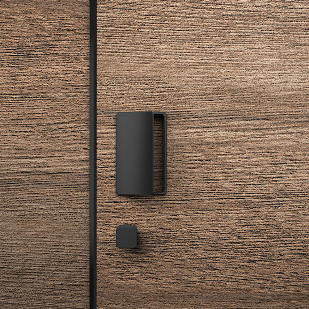 Эргономичная ручка - скоба с мягким закруглением и возможностью замены внутренней магнитной панели для гармоничного сочетания покрытия/цвета ручки с дверями. или же для обозначения места управления дверью.