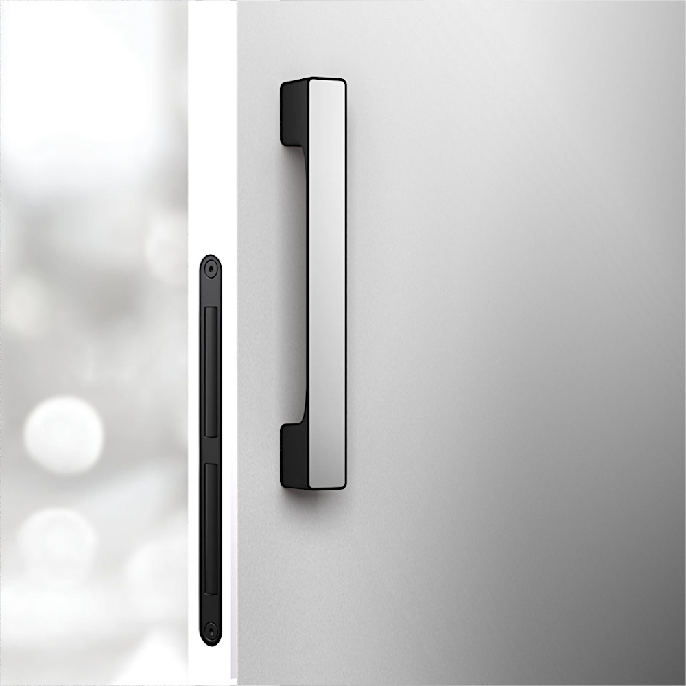 Креативная ручка - скоба с возможностью выбора вставки, чтобы ручка гармонировала с декором/ поверхностью двери. Ручка предусматривает эффективное запирание WC/ванных комнат. Ручка продолжает целостную коллекцию дверной и оконной фурнитуры Maximal, целью которой было объединить интерьер серией фурнитуры, выполненной в одном дизайне.